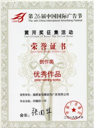 “黄河奖”是中国广告界公益广告作品的最高奖项,是中国广告业界广泛认可的年度大奖。中国公益广告黄河奖评选年度内发布的宣传人类文明道德观念、提升社会文明程度,并获得良好社会效益的公益广告作品。大赛的目的是营造和谐的社会氛围,树立良好的文化道德和社会风尚,回答社会公众关切的问题和期望,赢得更多人们的领悟与共鸣。第26届中国国际广告节长城奖、黄河奖、消费者权益保护公益广告大赛经过数月征集以及初审、终审严格评审,在万余件参赛作品中共评选出黄河奖优秀奖作品208件,竞争激烈程度堪称历届之最。